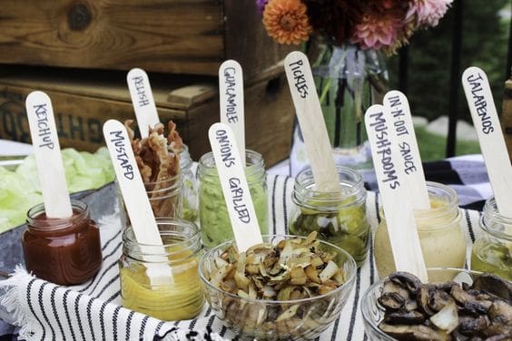Displaying your ingredients on a buffet style bar will give you the opportunity to liven up your party with the decorations of your choice. Perhaps add a touch of colour with a lovely tablecloth or sarong and an assortment of bright bowls, or keep it simple and rustic with a wood table and glass jars. You can get extra creative by adding a chalkboard with fun recipes for your guests to try.