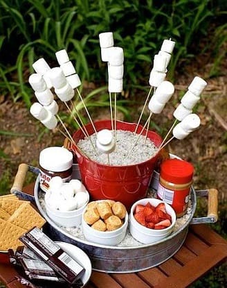 Roasting marshmallows over an open flame can be potentially dangerous, so we recommend keeping your party safe and kid-friendly by using long skewers. Finally, for a hassle-free clean-up be sure to stock your buffet table with wet wipes.