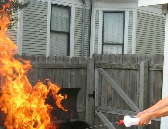 Always have a bucket of sand close to your fire pit. Having a garden hose close by can also come in handy when dealing with wayward sparks, providing you have the correct hose setting set up. A “spray” setting will clear the fire out, but a direct stream of water might end up causing more problems because it will likely spread the burning embers.