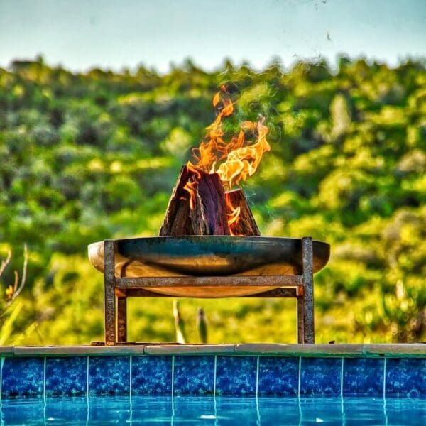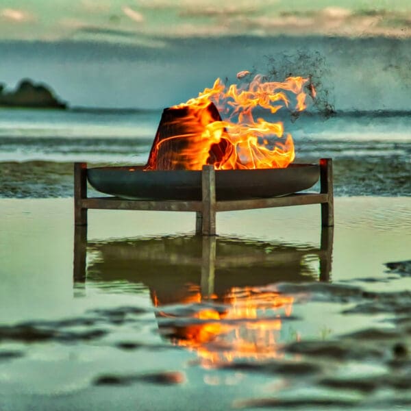 The fire pit is coated with a black fire paint. The paint however will not last indefinitely. This will depend on how many fires you make. Please note to oil the areas where the hot coals sit, inside and outside as well as on welding sites to prevent rusting.