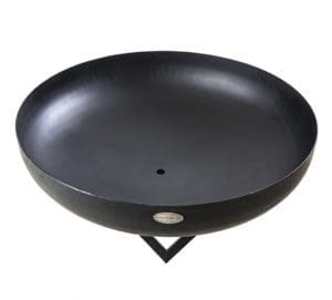 The fire pit is coated with a black fire paint. The paint however will not last indefinitely. This will depend on how many fires you make. Please note to oil the areas where the hot coals sit, inside and outside as well as on welding sites to prevent rusting.